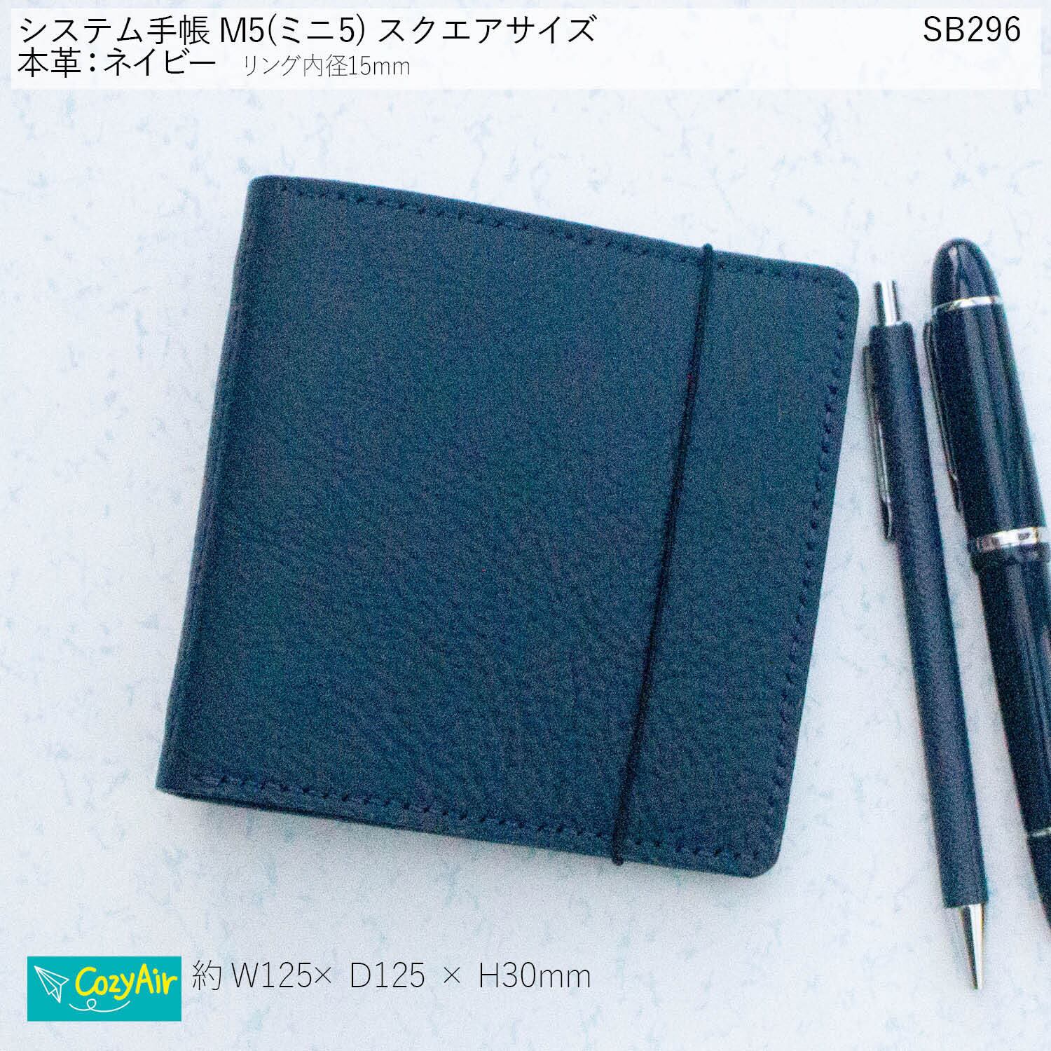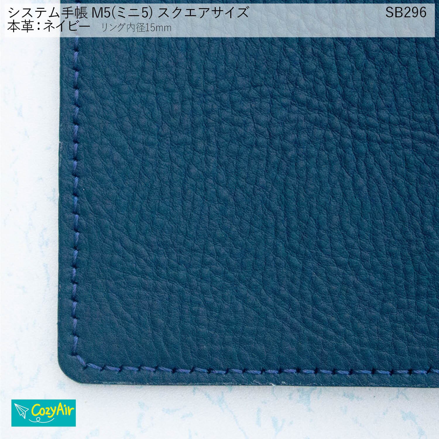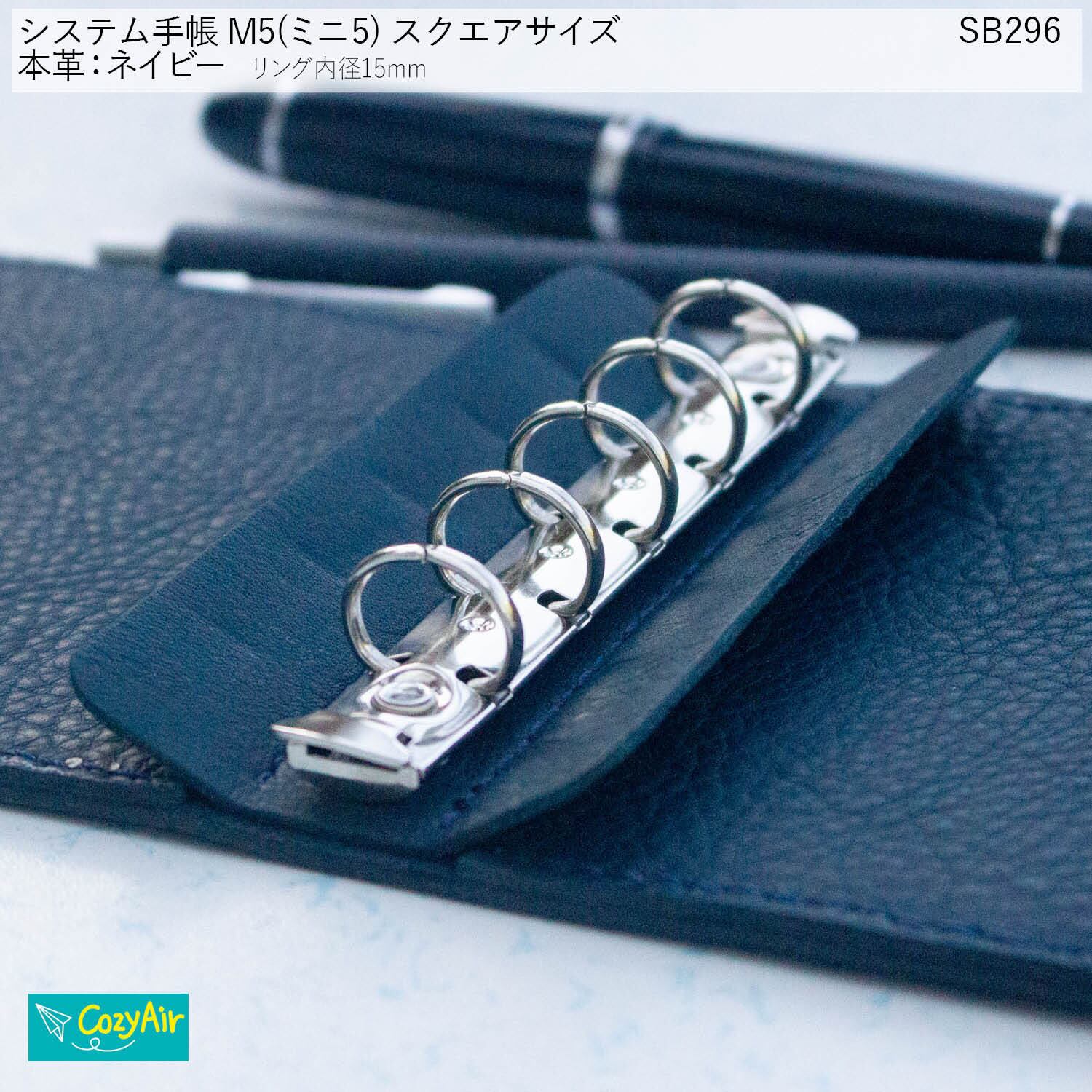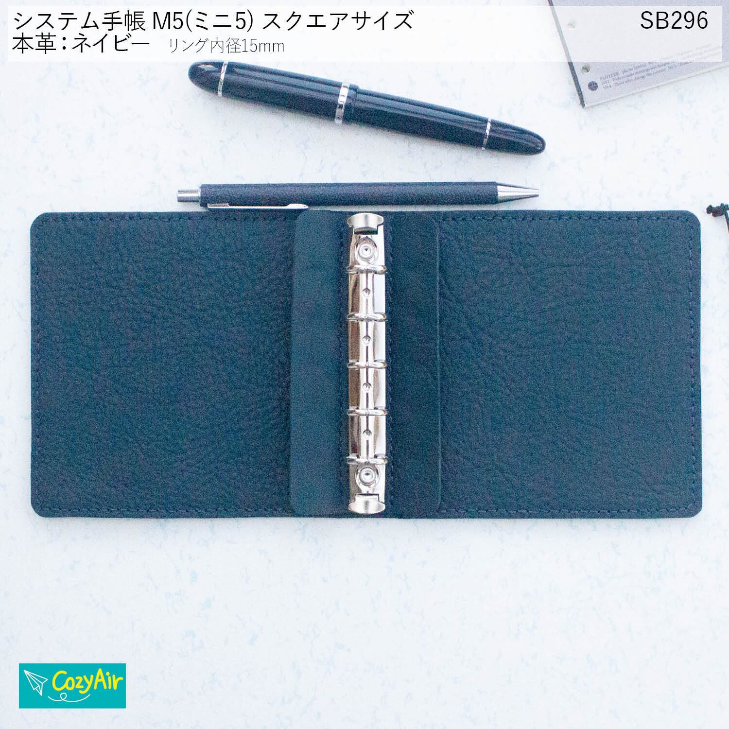 SB296 ミニ5スクエアサイズ システム手帳 5穴 リング径15mm 本革・ネイビー