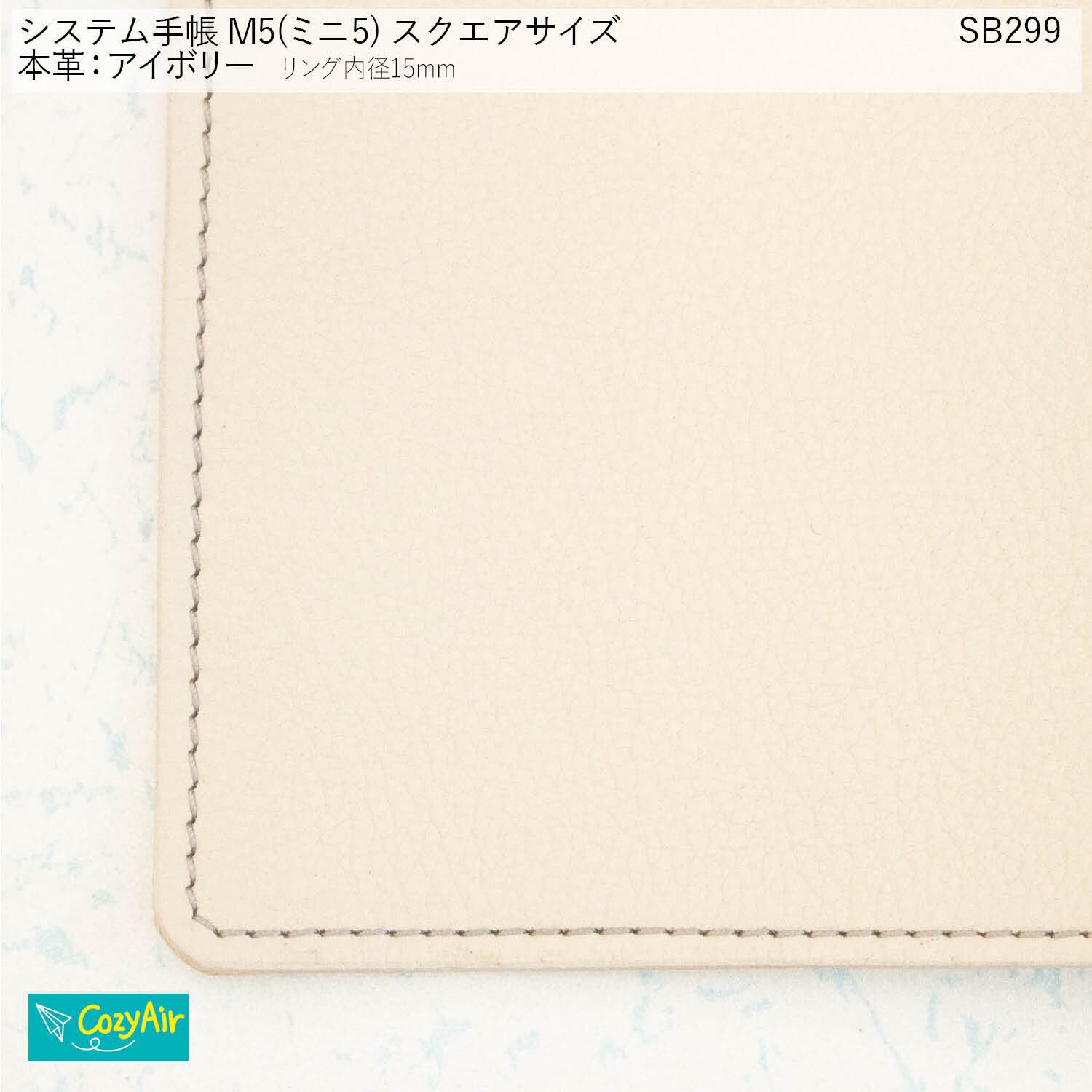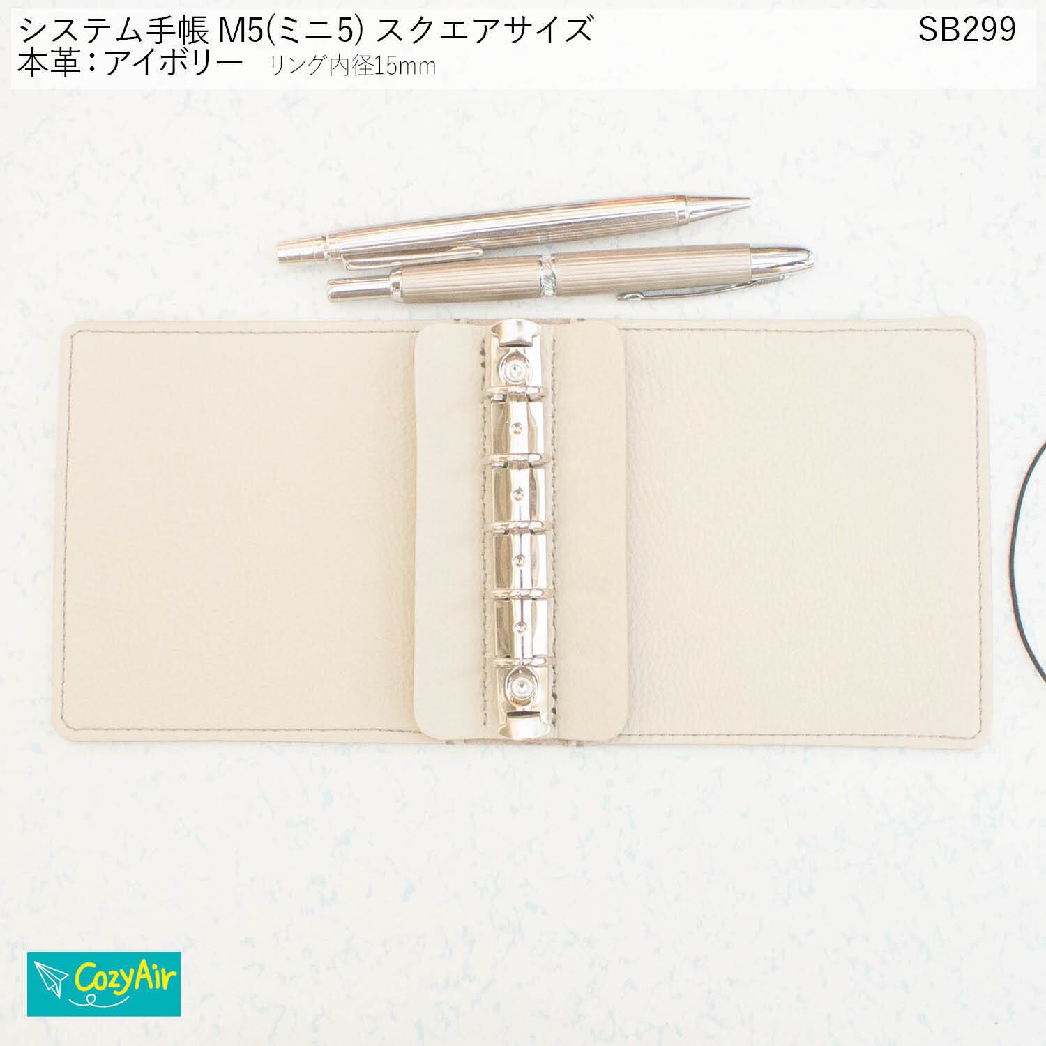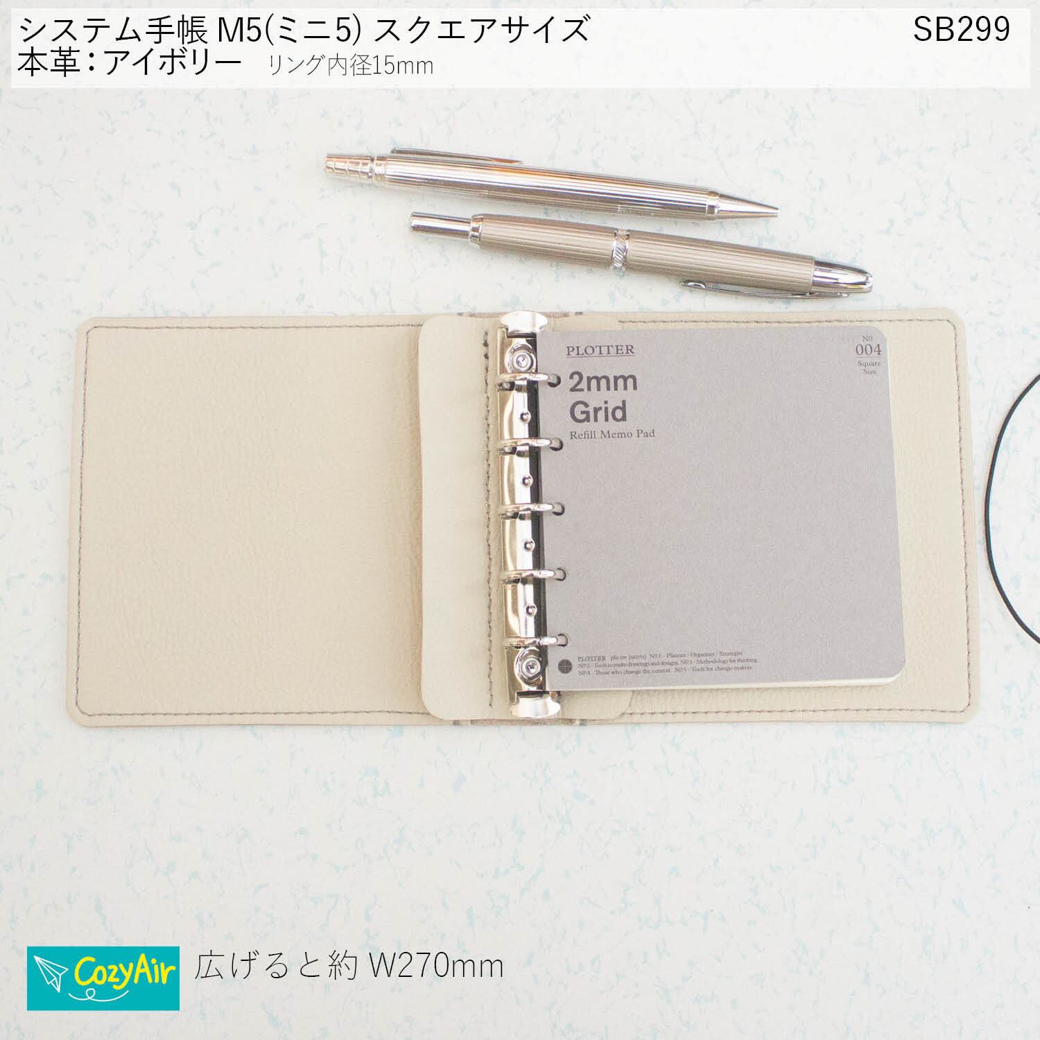 SB299 ミニ5スクエアサイズ 優雅な佇まい 横長ノートのシステム手帳 5穴 リング径15mm イタリア製本革・アイボリー