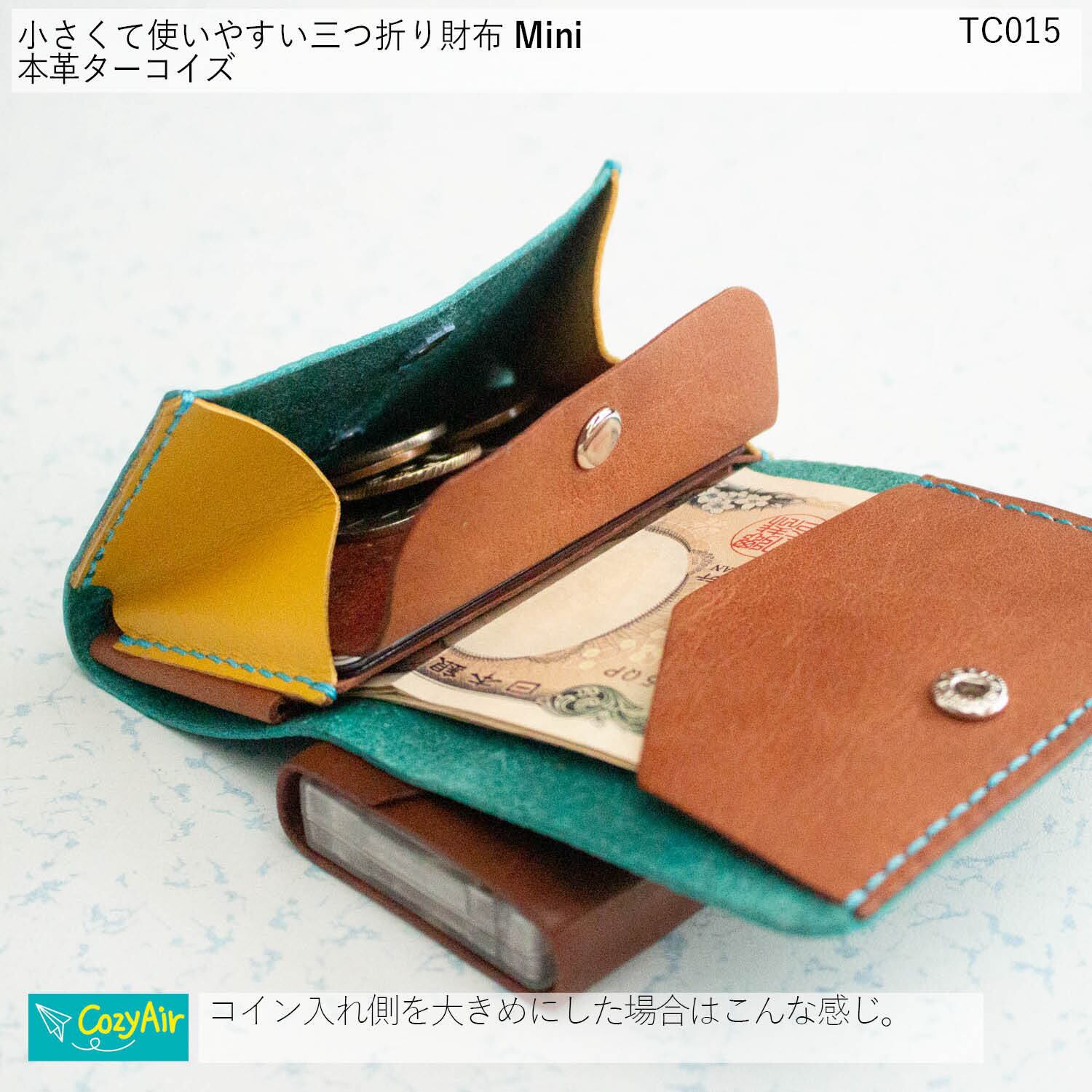 WL015 小さくて使いやすい三つ折り財布Mini 本革ターコイズ
