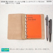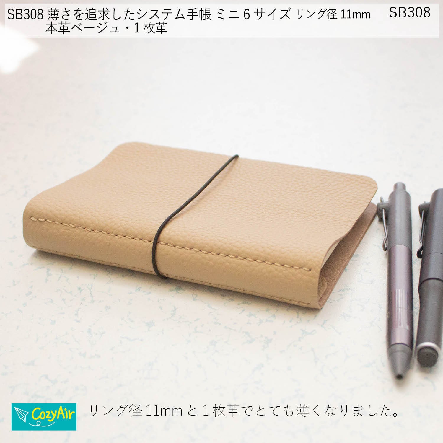 SB308 【受注制作】薄さを追求したシステム手帳 ミニ6サイズ シンプルデザイン リング径11mm 本革ベージュ 1枚革
