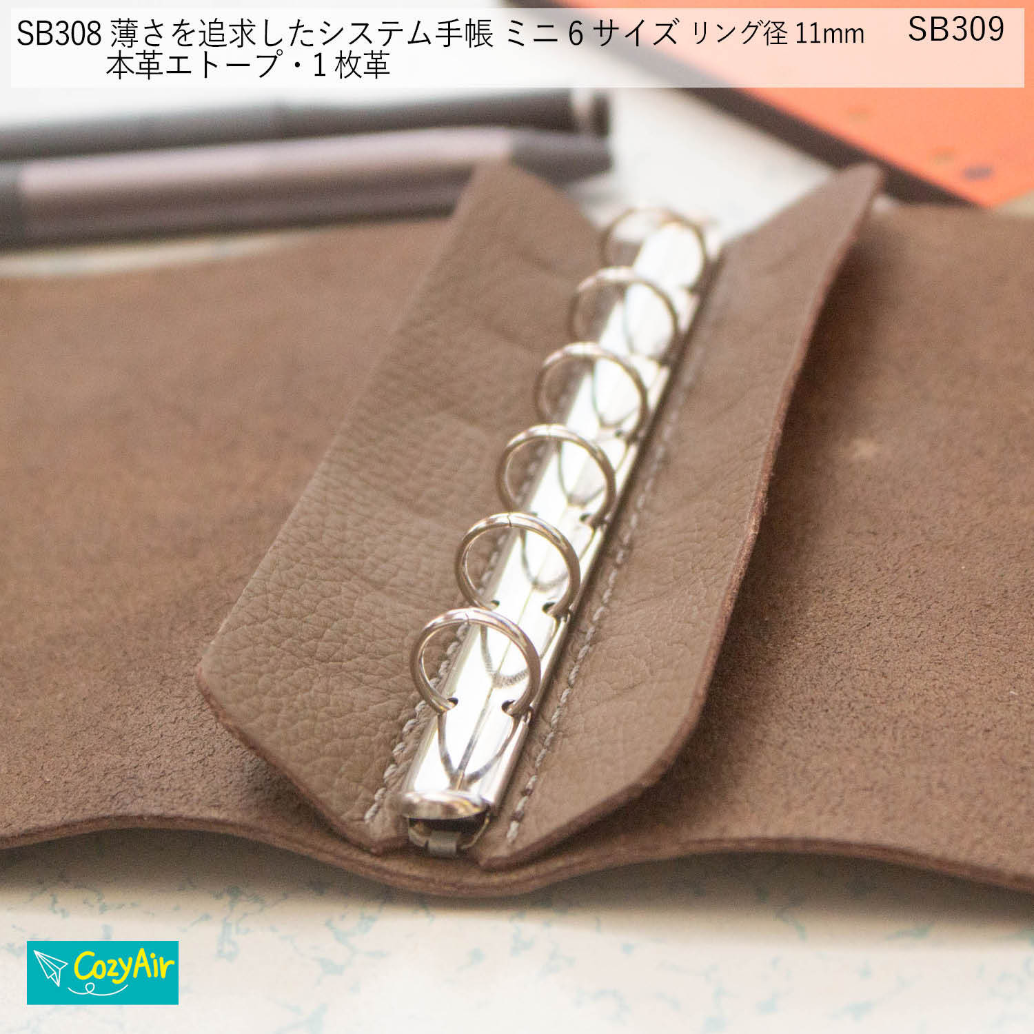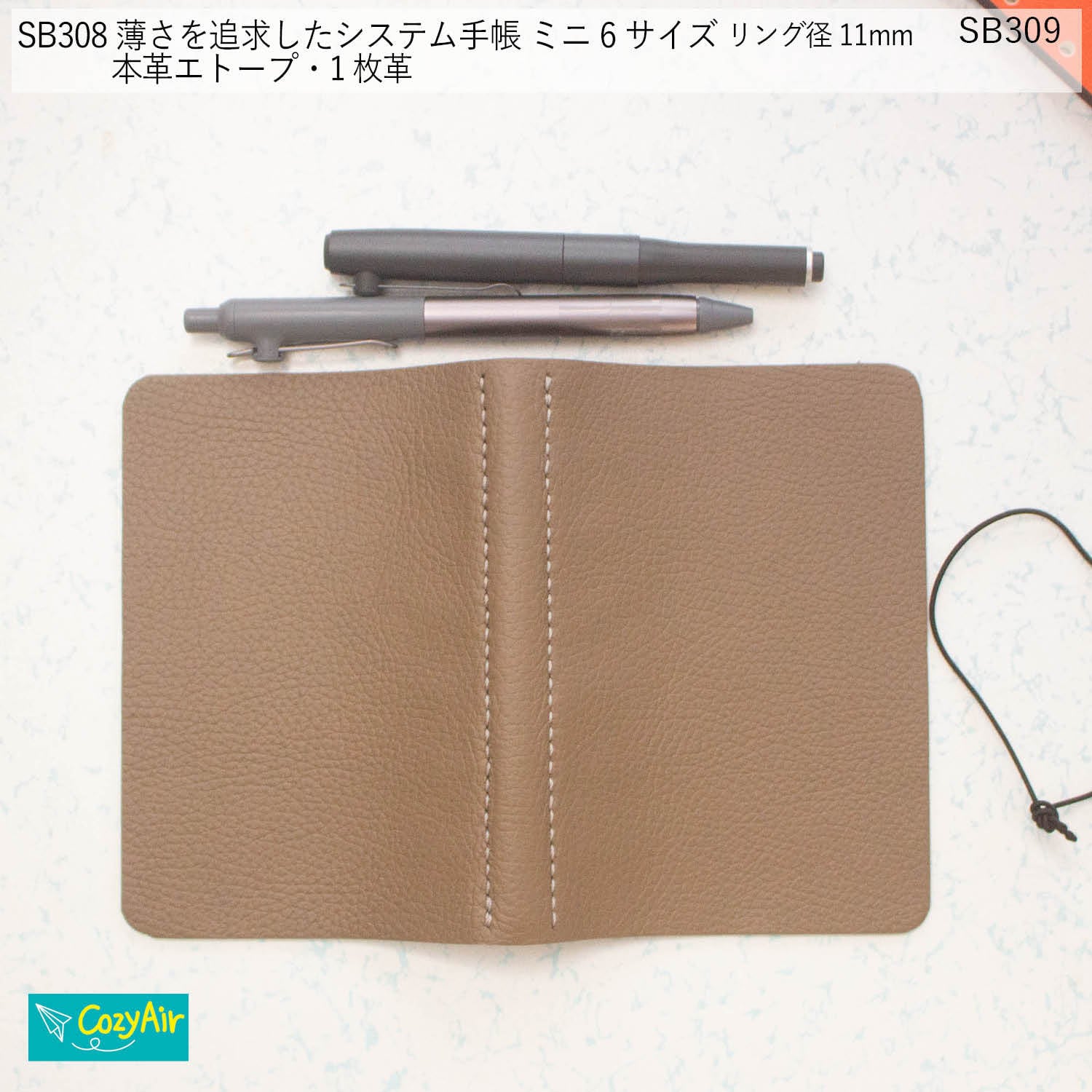 SB309 薄さを追求したシステム手帳 ミニ6サイズ シンプルデザイン リング径11mm 本革エトープ 1枚革