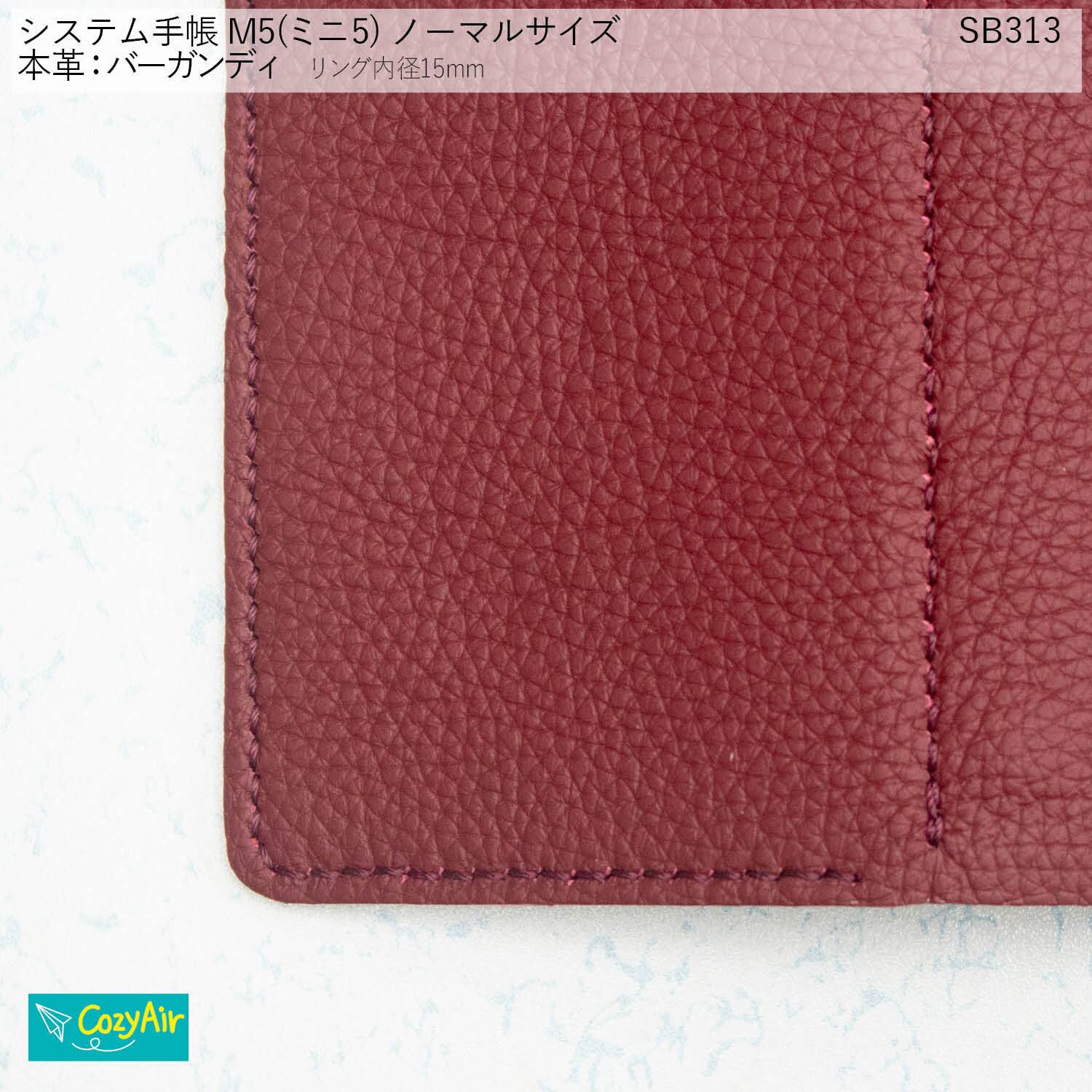 SB313 ミニ5ノーマルサイズ ポケットに忍ばせる革の相棒 リング径15mm システム手帳 5穴 シンプルデザイン 革バーガンディ