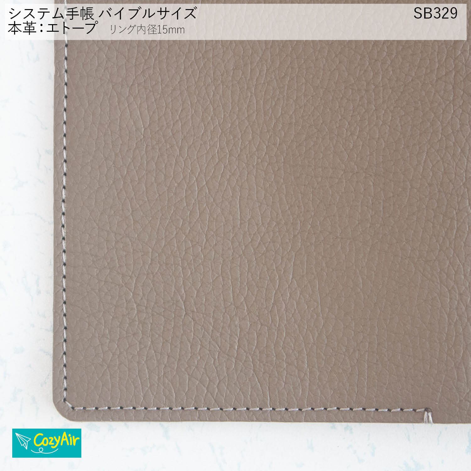 SB329 【受注制作】定番サイズの超シンプルなシステム手帳 バイブルサイズ リング径15mm 本革エトープ