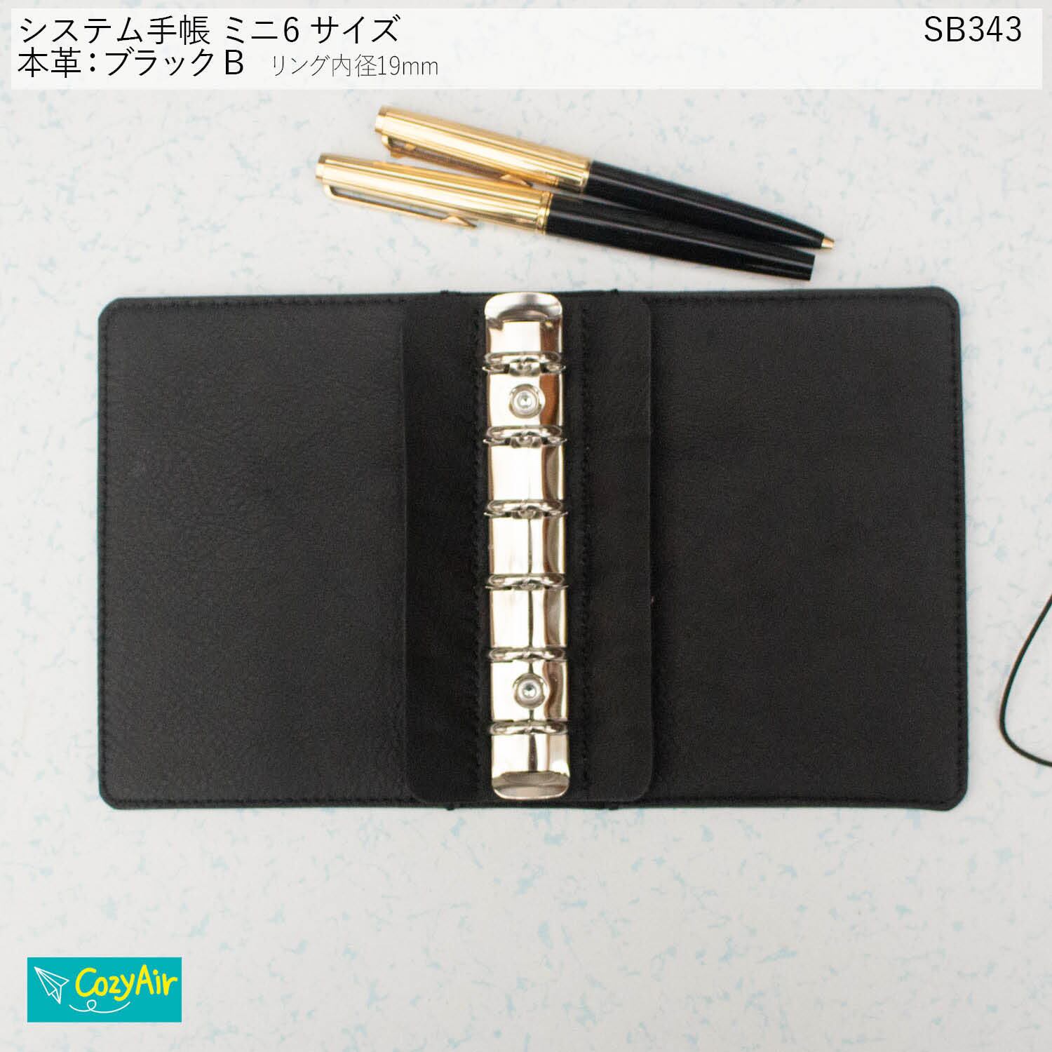 SB343 【受注制作】ミニ6サイズ M6 システム手帳 リング径19mm ブラックB