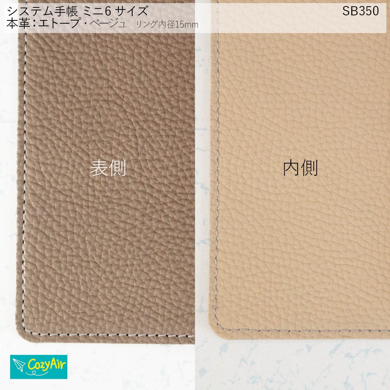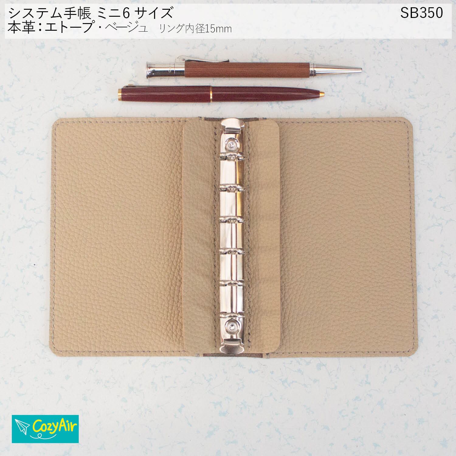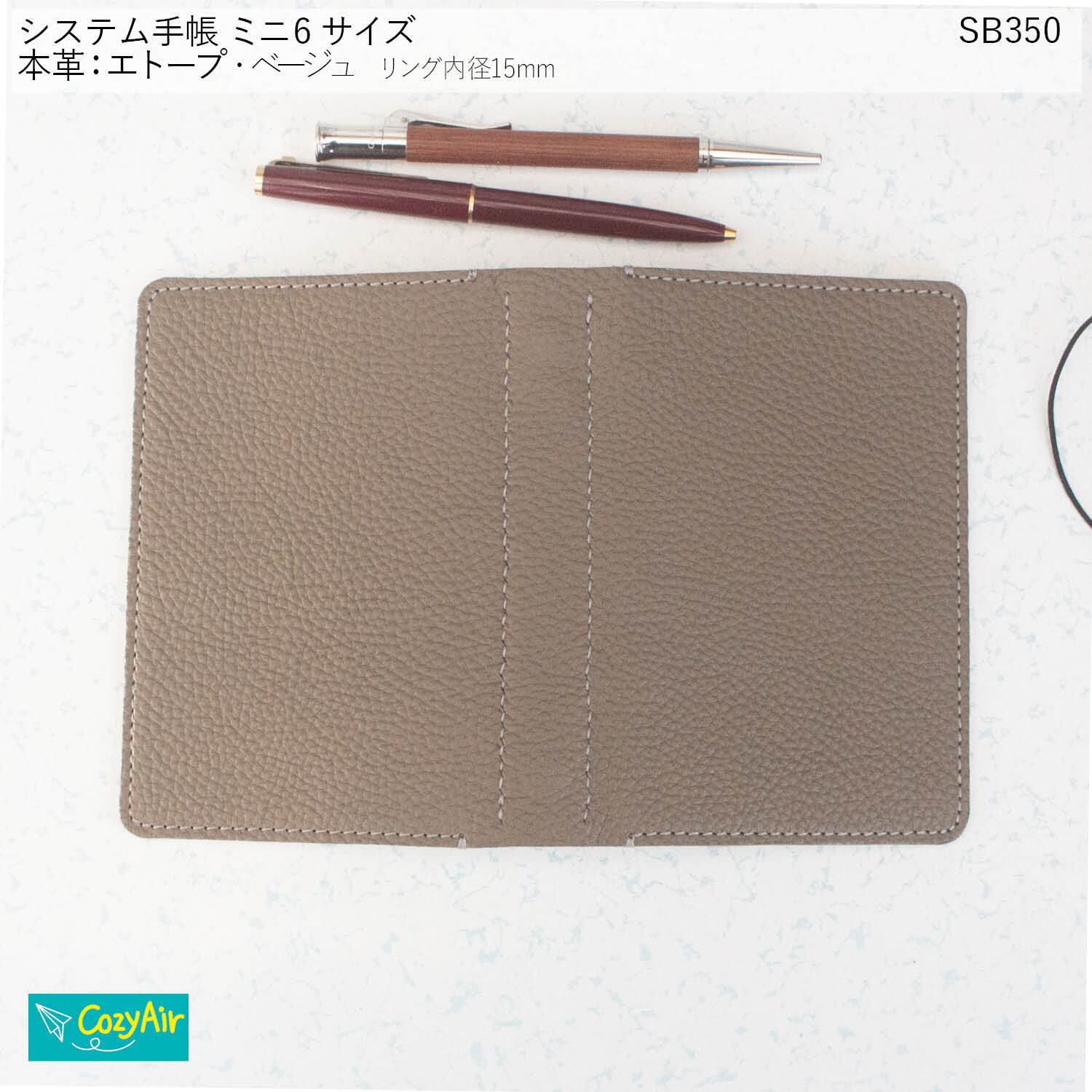 SB350 【受注制作】手のひらに収まるシステム手帳 ミニ6サイズ リング径15mm シンプルデザイン 本革エトープ・ベージュ