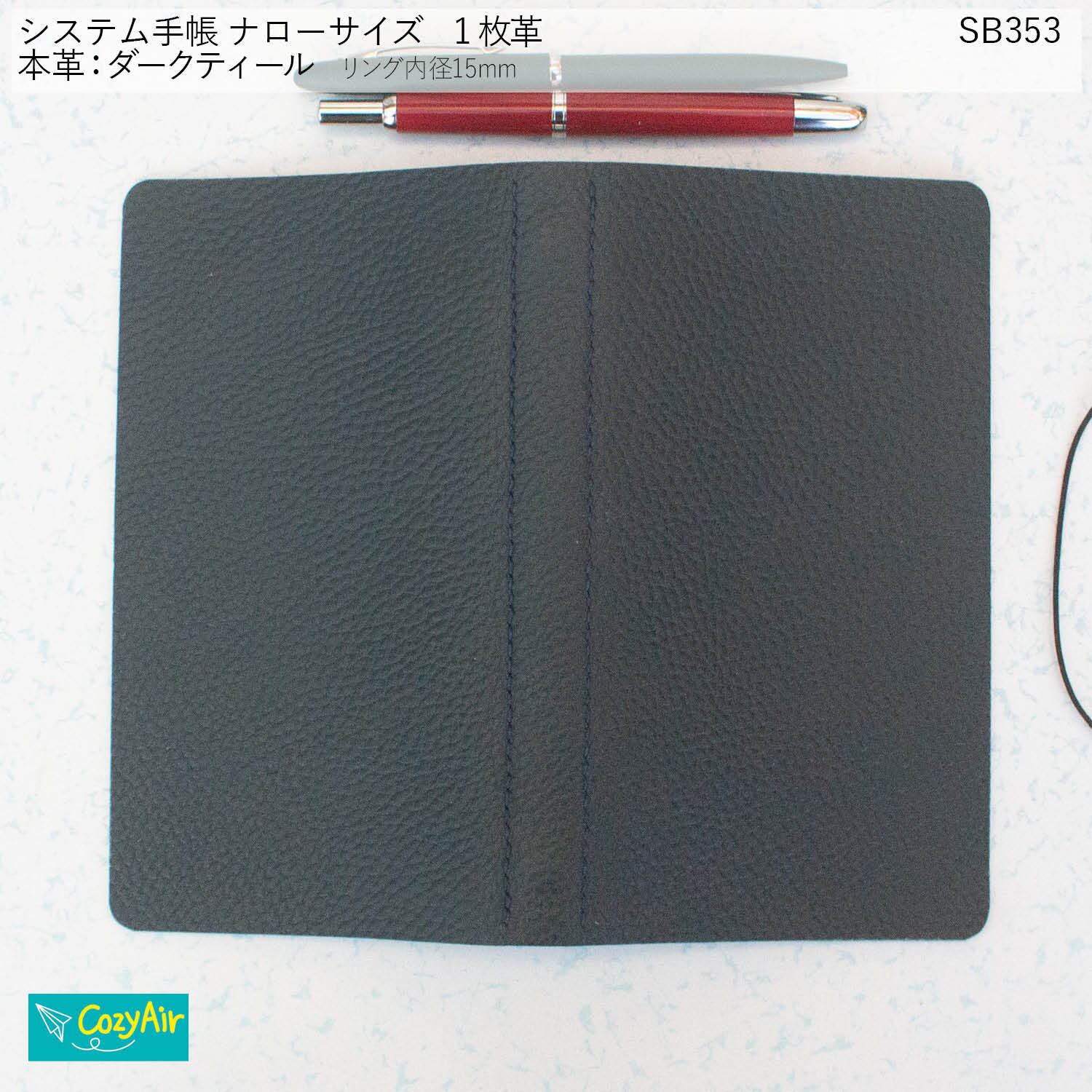 SB353 【受注制作】胸ポケットに収まるシステム手帳 ナローサイズ 1枚革 シンプルデザイン リング径15mm 本革ダークティール