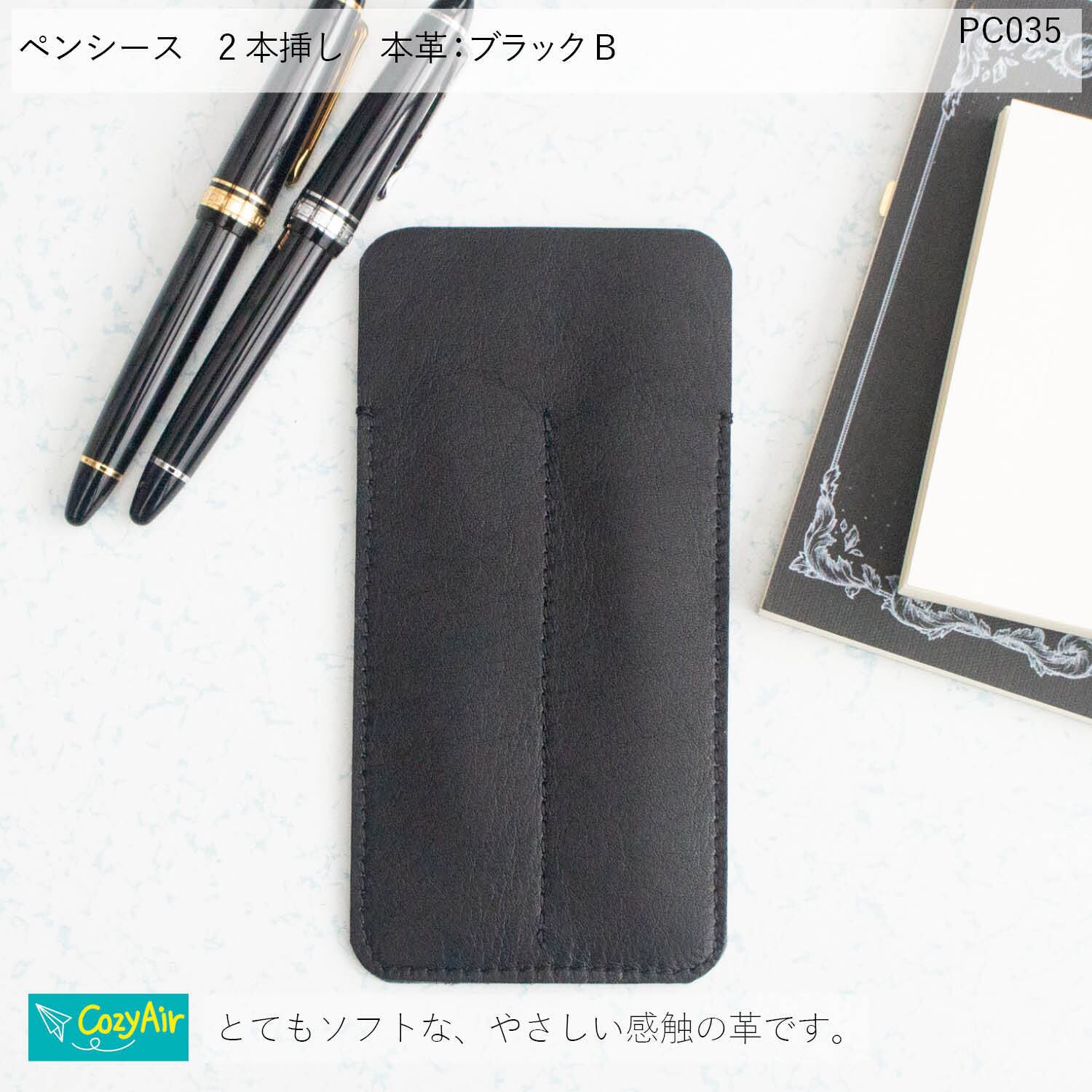 PC035 ペンシース 2本挿し 本革・ブラックB