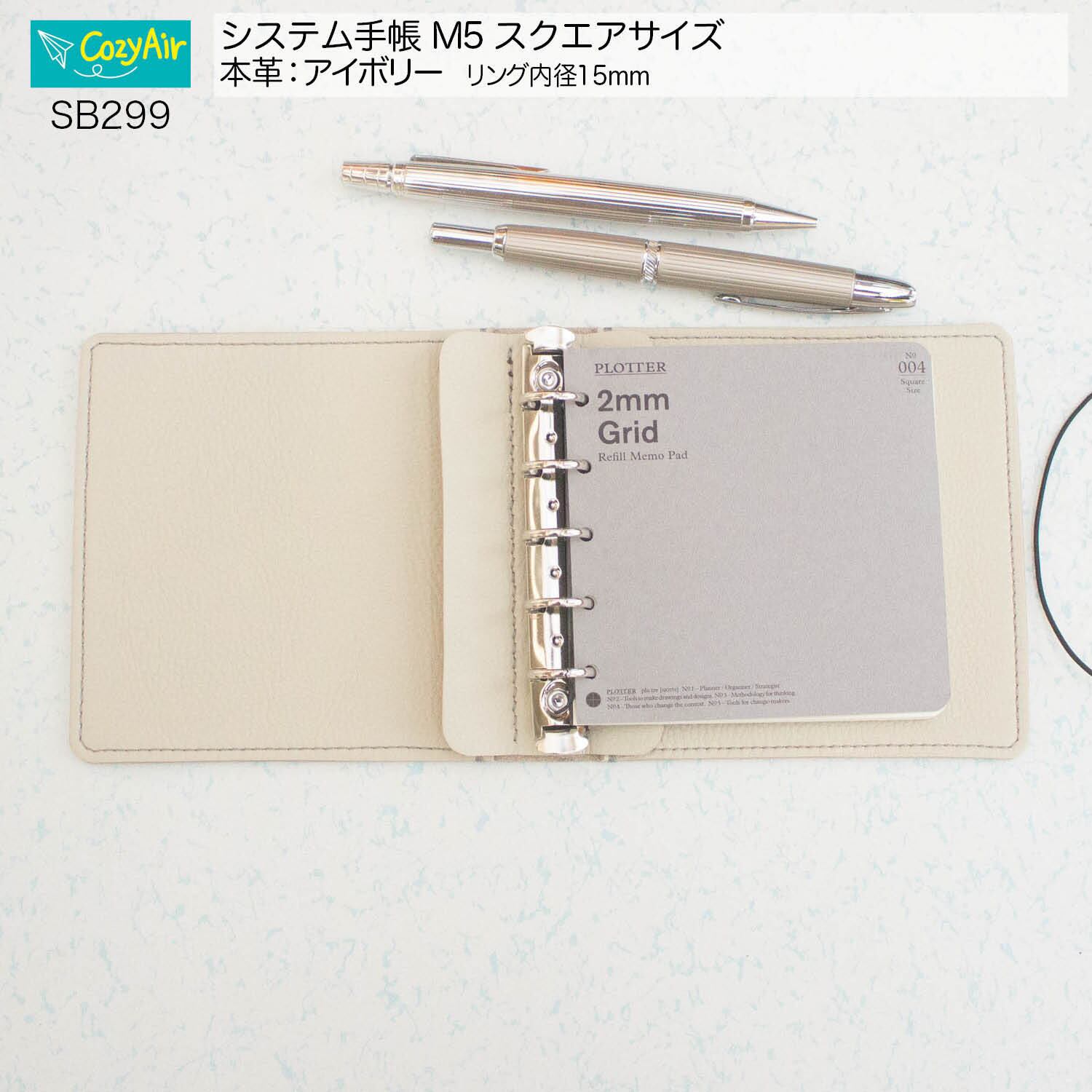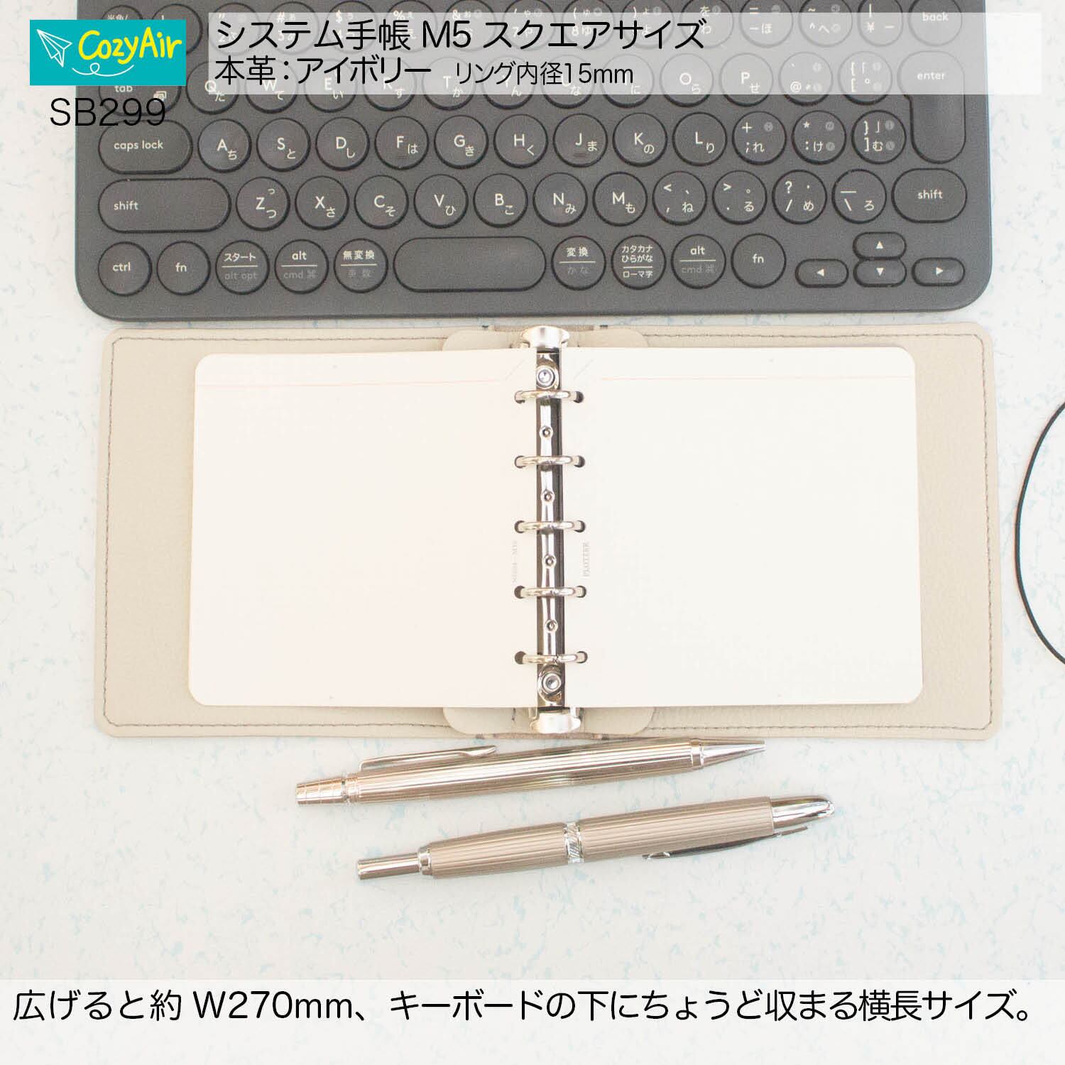 SB299 ミニ5スクエアサイズ 優雅な佇まい 横長ノートのシステム手帳 5穴 リング径15mm イタリア製本革・アイボリー
