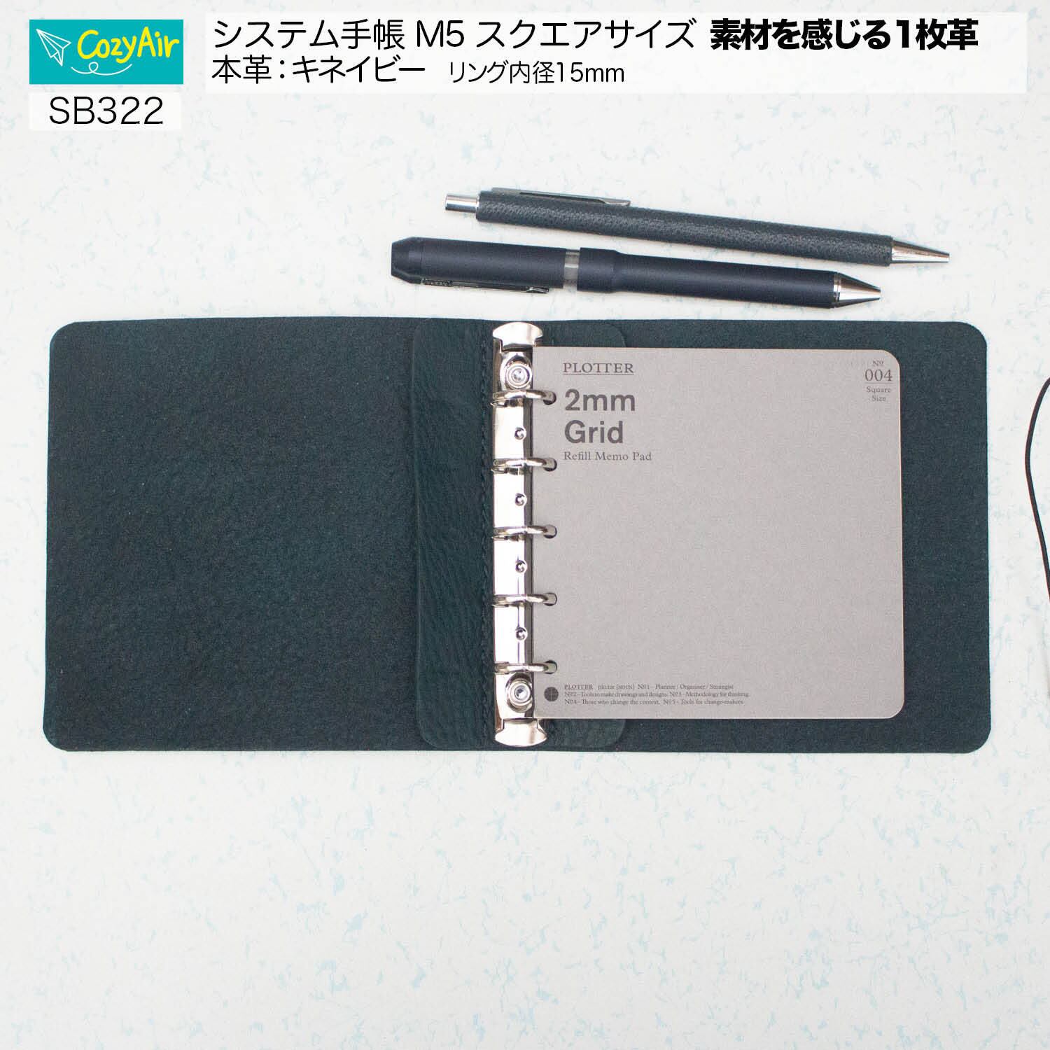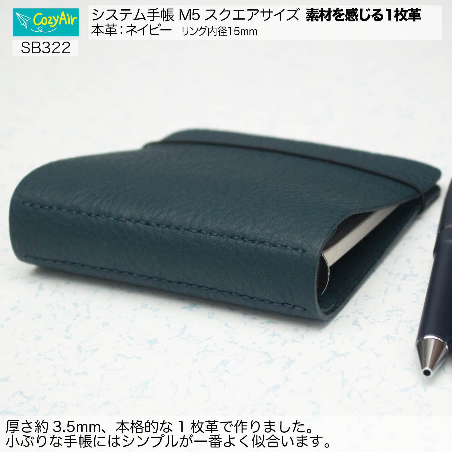 SB322 優雅な佇まい 横長ノートのシステム手帳 ミニ5スクエアサイズ シンプル 15mm 素材を感じる1枚革