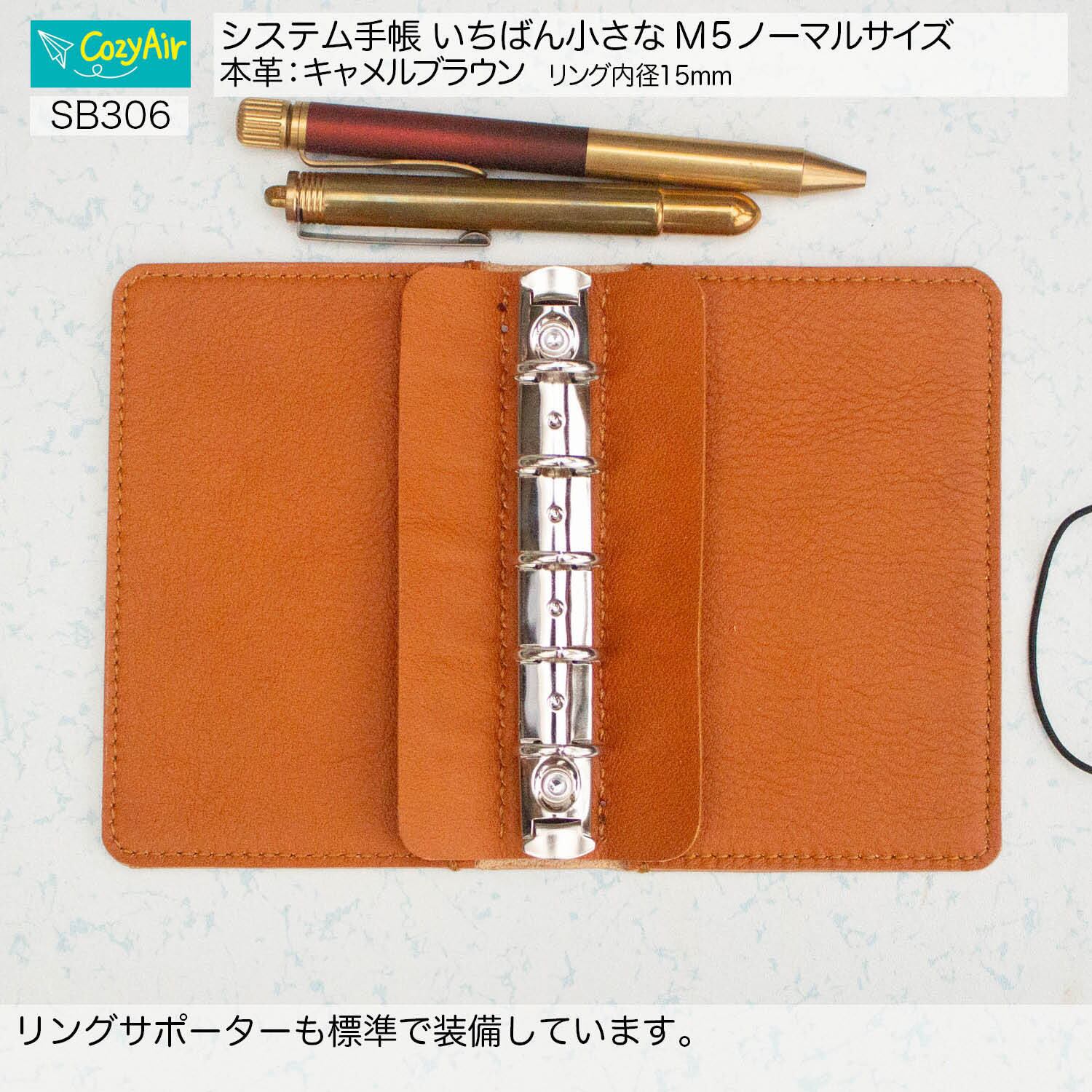 SB306 ミニ5ノーマルサイズ ポケットに忍ばせる革の相棒 リング径15mm システム手帳 5穴 シンプルデザイン 革キャメルブラウン