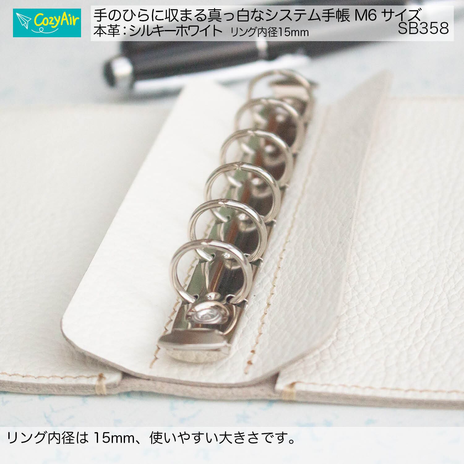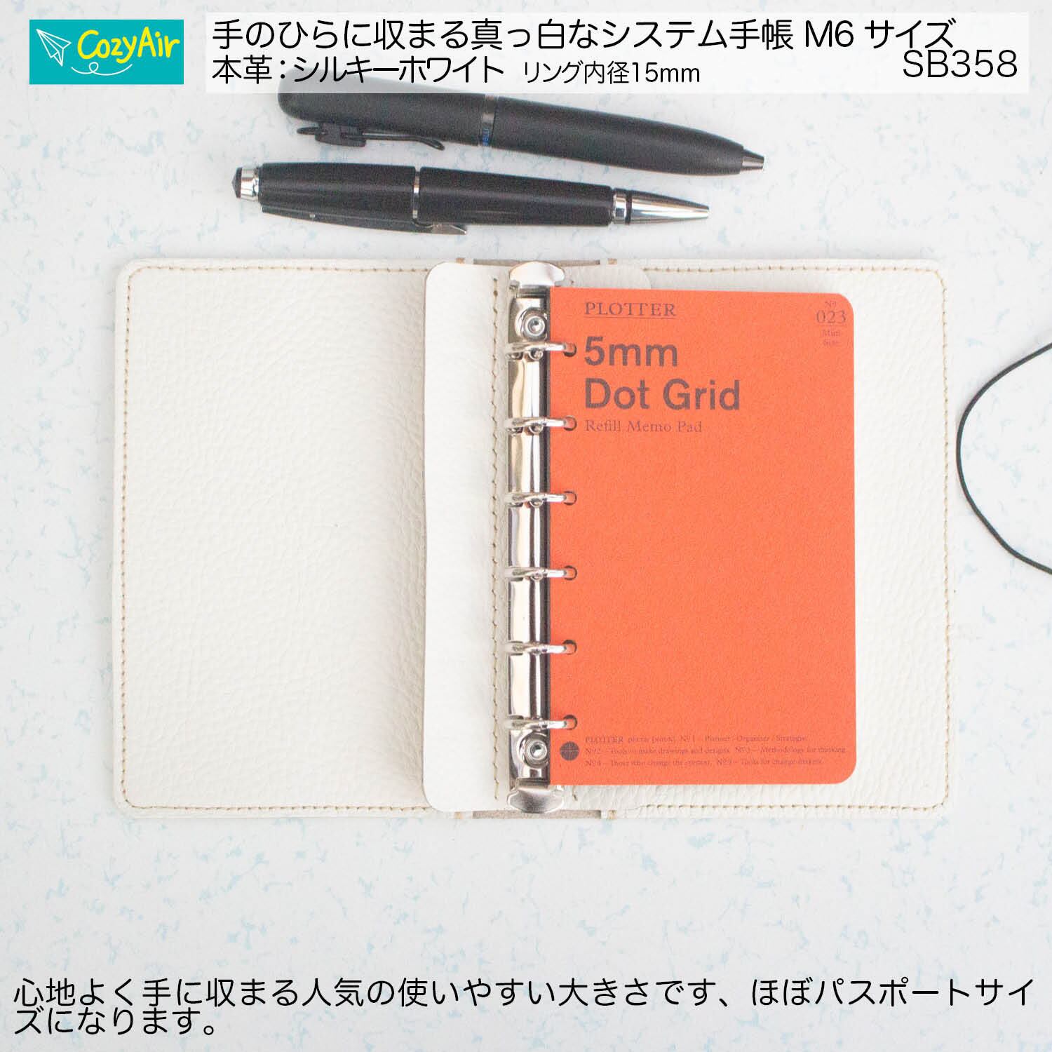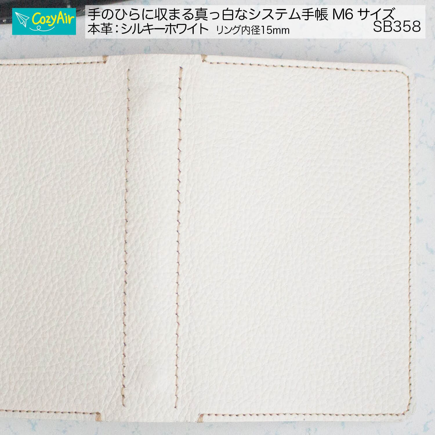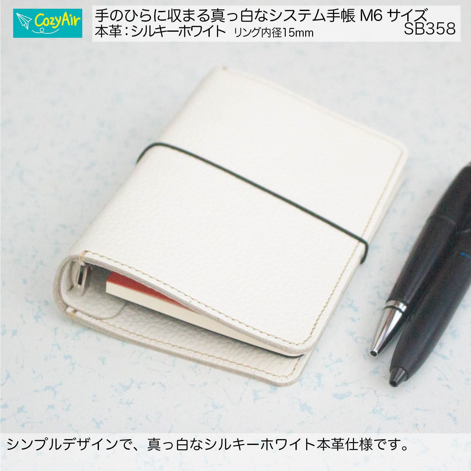 SB358 手のひらに収まるシステム手帳 ミニ6サイズ シンプルデザイン リング径15mm 本革シルキーホワイト